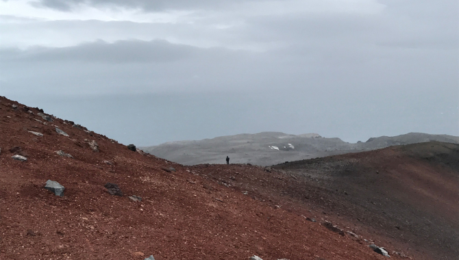 A clear morning with good visibility and with the sun often shining amongst the clouds followed the last evening experience which was a good reminder of where in the planet we are sailing at the moment, the cold and stormy Antarctic Peninsula. Making way on headwinds and drifting overnight in the Antarctic Sound, Europa meets the new day closing up to the continental Antarctic coast of the Antarctic Sound, an area considered as a sort of a gate to the Weddell Sea. This channel gets its name not for the southern continent itself but after the ship that wrecked here during then Swedish Antarctic Expedition at the start of the 20th Century. In 1901, she left Sweden captained by a character well known for all of us already, Carl Anton Larsen, under the leadership of Otto Nordenskjold, a 32 year old geologist eager for Antarctic exploration and scientific development. A successful expedition though filled with unexpected developments, unfortunate turns of events that translated into the loss of the vessel, unplanned over-wintering and a saga of survival and endurance. With the typical changes and shifts on the meteorological conditions of the area, today’s morning good weather allow for good views of the high orange cliffs of Brown Bluff. The spectacular volcanic crags fall off a 3.2 km long ridge of basalts and lavas with a flat low area at their foot. Here, Adelie and Gentoo penguins thrive, counting hundreds of couples of the latter ones and several thousand of Adelie, all surrounded by glacier fronts and a bay often filled up with a mixture of sea ice floes and bergy bits originated by the glacier calvings. A location not just interesting for its wildlife but for the setting itself, with a geological history that tells about an “englacial volcano”, originated by eruptions that mainly happened underneath an ice cap and its posterior glacial and weather erosion. The eruptions are part of the so called James Ross Island Volcanic Group, ranging in age from the Miocene to present. Its original diameter is thought to have been about 12-15 kilometres, and probably formed by a single event.