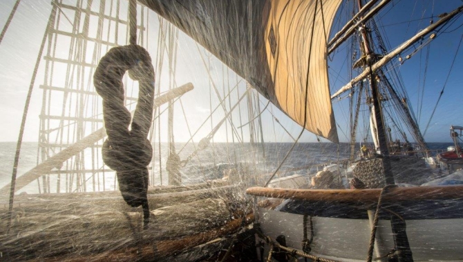For four days Europa has been enduring the wild waters and winds motoring in a cloudy and foggy Drake Passage. Crossing the wide band of the Polar Front, we find ourselves in the Sub-Antarctic temperate climate area, while leaving behind Antarctica to the South. During the last day we experienced abrupt changes in the water and air temperature, which affects the weather. Often foggy conditions reign over this climatic instability area over the northern edge of the icy Antarctic waters and in the surroundings of the Convergence. But crossing this oceanographic and ecological boundary while sailing northwards, we experience a welcomed weather change, with a forecasted wind increase and direction change, clear skies and a starry night over our heads. Blowing at 25 to 30kn on a NW-ly direction once more, the Lower Staysails and Inner Jib are set again to help our engines on our northbound course. From a rest on the big swell during a few hours, now again growing seas make the Europa roll and pitch. The blue skies that all of us cherish, lasted until the afternoon, when several squalls and showers crossed our path, leaving behind a rainy night. It was then when we experienced a wind shift, with wind veering to the north, a good moment for tacking the few staysails set and brace around to starboard tack, changing from a northerly course to a more westerly one, gaining distance to get closer to the southernmost tip of the America’s. But this wind shift didn’t last very long and a couple of hours later we come back to the northerly course, tacking staysails and bracing again. With all this we try to speed up our approach (now just about 120nm left) to the Beagle Channel, where we plan to arrive tomorrow night, hopefully having the chance to set sail on our last full day at sea. For us, crossing the Drake Passage these last few days, seems like a long and hard time, but we just have to look behind at the past, when many parts of the world were still unknown and the expeditions and navigations were taking even several years in a row. The Europa counts with all the technology necessary nowadays for safely sailing around the planet. The coastlines and islands are charted, digital and paper charts fill several of our drawers and computers, we can count with good wind forecasts, communications with the rest of the world are available and in difficult navigation circumstances like the crossing of the Drake Passage during the last days, the autopilot can keep a steady course when manual steering becomes tough on strong winds and huge swells.By the 16th Century it all was a very different story. Ships were much less reliable, they were lacking engines, the sailing was based on good seamanship, celestial navigation and dead reckoning. Isolation and lack of many facilities were the trademark of a hard life and on top of all many regions of the planet were still unknown and their waters uncharted. Amongst those areas, the mystery surrounding the high latitudes on the southern seas include these 500nm of rough waters between Patagonia and Antarctica, at the time, a continent still waiting to be discovered. Actually, it was Ferdinand Magellan in 1520, after endless struggles, who found a way to connect the Atlantic and Pacific Oceans, through the Strait that nowadays bears his name. Nothing was known of the lands and waters south of this passageway until the year 1577, when England decided to start exploration of the southern hemisphere. Within the framework of this project, Sir Francis Drake departed for the South Pacific, having to use the Strait of Magellan to reach it. After being battered by storms and foul weather in Southern Patagonia, one of the three ships of his fleet sank and another, thought lost, sheltered from the most ferocious storm in the inner waters of the nowadays Chilean Channels. In an unexpected turn of events, his ship, the “Golden Hind” was blown out at sea, and threatened by the violent winds she drifted southwards, leaving the last known land behind. Winds had driven Drake to the discovery of open waters below Tierra del Fuego island, that challenging expanse of ocean now bearing his name, the Drake Passage.
