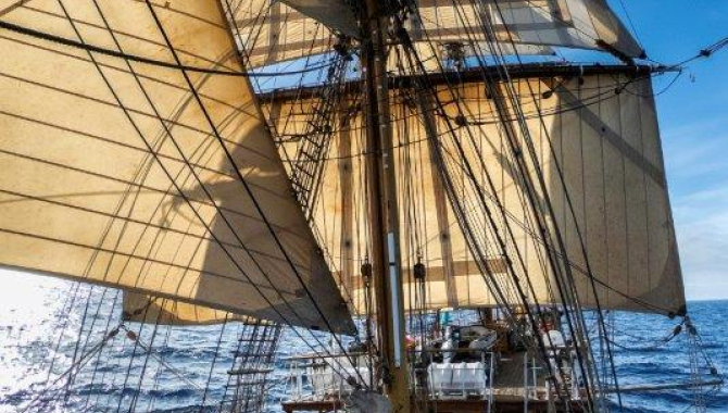 The light variable winds made for a bit of sailhandling during the start of the new day and following hours. Just by midnight the braces are pulled to Starboard tack, still under 12kn of NW-ly winds. But about four hours later the conditions turned to be good enough to set the courses that had been hanging in their gear, brace slightly to starboard tack, pass the staysails to the other side of the stays, and set again the lower ones. Like this we were able to turn the engines off and take advantage of the nice smooth sailing for a few hours. Keeping a 155º course Europa was able to maintain an average speed over 5kn, as a fair breeze blows from the WNW. As we sail south, we left behind the foggy area that seemed to cover the Antarctic Convergence with its steep changes in water temperatures. Now the skies clear up and the sun appears amongst the high clouds, leaving behind a sunny afternoon. The sea remains calm just affected by the low long swell and its surface water stabilizes its temperature just below 2ºC. The nice and fine sailing lasted until the end of breakfast, when we found ourselves once more in easing winds. The engines had to be switched on again to keep the average speed needed to reach the northern coasts of the South Shetlands Islands by tomorrow morning. Good and warm weather during the afternoon allowed the crew to continuewith several of their maintenance projects up the rig, while for the rest, we had a pleasant time hanging out on deck or joining the watches for lookout and steering under the blue skies. The calm seas also made for all to get over the last hints of seasickness and finally be around for the sail training and lectures offered. Our doctor repeated her talk about hypothermia and how to prevent it, relevant for the cold temperatures we are about to face during the next couple of weeks visiting Antarctica. Besides this more practical information to keep ourselves warm and hydrated to better enjoy what is happening as we sail the Drake and what is about to come visiting spots ashore, Nilla also repeated her lecture on the general world oceanic circulation, with special emphasis on the currents and water masses of the Southern Ocean and waters around Antarctica, and how they affect the global climate of the planet. Today, being the last day at sea on the Drake Passage before reachingAntarctica, it was the time for the last preparations, including finishing the Biosecurity Procedures and attending the mandatory “International Association of Antarctic Tour Operators (IAATO)Briefing”. Bark Europa, like all other tour operator companies working in Antarctica, belongs to that membership organization that advocates for environmentally friendly and safe touristic operations inAntarctica. It sets the rules and a code of conduct for touristic activities, in the frame of the Antarctic Treaty agreements. The day ended by clewing up all the square sails, striking the staysailsand furling all the rig, under very calm wind conditions and surprisingly calm seas. We continue for part of the night motoring our way south towards Desolation Island, the site we plan to explore in themorning. Located in the South Shetland Islands, north of the large and glaciated Livingston Island, it is in the area we plan to visit tomorrow and during the next couple of days and of great historical relevance to the early Antarctic era of exploration and discoveries, actually being the first land of the unknown “Terra Incognita Australis” that was ever sighted. In 1811, forty years after Captain James Cook circumnavigated Antarctica unfortunately without even catching a glimpse of land, but nevertheless concluding that there had to be a frozen Southern Continent, a group of 5 English businessman gathered funds to build a trading ship. One of them was William Smith, born 1790 in the coastal village of Seaton Sluice, and raised three miles further north in the port of Blythe (a toponym that give us a hint of the place name for tomorrow’s plans at Desolation Island, in Blythe Bay). The new ship launched in 1812 was named “Williams” and started trading with South America, with William Smith as Captain. During one of her trips in 1819, she was blown south off Cape Horn, ending up at about 62ºS where William sighted land, where it was supposed to be just water. After the controversial discovery, a year later a British Navy Expedition was put together to investigate these new lands, that have been baptized as “South Shetland”, since the Scottish Shetland Islands occupied an equivalent latitude in the north. Captain Edward Bransfield with William Smith and 43 crew sailed south from the Chilean city of Valparaiso, sighting Livingston Island on the 16th Jan 1820. They followed the northern coasts of the islands and landed south of King George Island, naming it after George III of England. Their discoveries led to a large-scale commercial sealing and whaling in Antarctic waters, which greatly affected the populations of those marine mammals. After years of indiscriminate hunting in South Shetland and Antarctic waters, we can consider ourselves pretty lucky thinking that nowadays their populations are recovering. And today we were witness of this process when along the journey several Humpback whales were spotted, distributed around a big area north of the South Shetland Islands, part of their traditional feeding grounds here in the high southern latitudes.