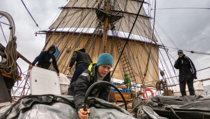 So, from reducing canvas we started then to set more sail once more. Inner Jib, Aap, Outer Jib and Royals help to keep our good speed and exhilarating sailing towards Falklands. Full speed towards our first destination makes for starting to change our way more to a SE-ly direction. For that, hands are called on deck to pull the braces a point sharper to Starboard tack and the helm is instructed to steer on a 160º course. This heading will bring us closer to Falklands leaving the South American coasts at our Starboardside, in the direction of the planned landfalls that we maybe will reach already by tomorrow afternoon. A couple of options for that are in Captain’s and Guides’ heads. It all will depend on our progress from now on and the site availability. Most of the tourist sites available fort visits are privately owned. We must coordinate our landing activities with them and follow the different rules and requirements they may have in the different settlements. Besides this, we have to work on schedules that can appropriately fit together our visits with the other tourist vessels that are operating in the area during those days.