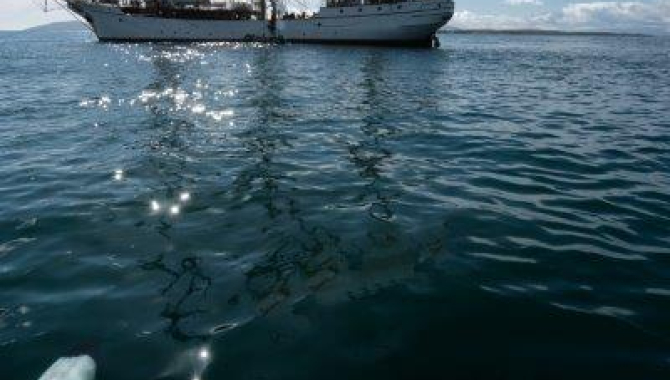 After spending some time observing all of this wildlife, people began to drift apart again. Many dotted the landscape between the northern large sand beach and the neck itself on the way back to our landing site, all taking in the beauty of our surroundings. Not a bad start to the weekend I would say. As we started to leave the island we then had another ‘moment’ seeing the Europa sitting at anchor in the gentle rippling water. The sun was trying to break out from behind the clouds but it failed. However we all have to agree that our ship looks spectacular in any weather. We were greeted by the crew on our arrival, did the obligatory boot washing and made our way into the deckhouse for a drink and a snack. We had time to warm up and get out of our wet weather gear in time for this evening dinner of salmon, mashed potato and vegetables What a treat. Life is good and after 2 weeks onboard we realise what a great experience we are part of.
