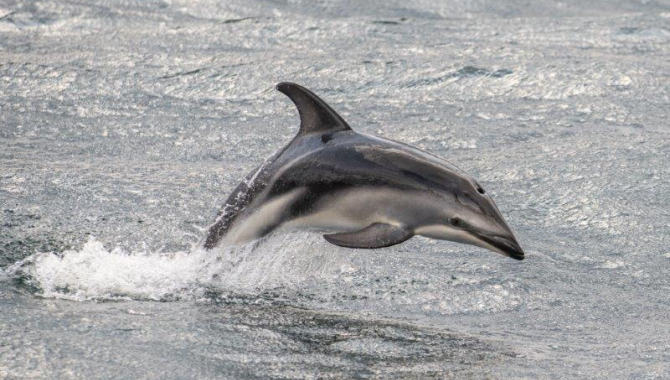 Op een dag klonk de kreet, dolfijnen, eerst zagen we er een paar die ons met speels gemak inhaalden, ons nieuwsgierig bekeken, wat trucs uithaalden en weer verder zwommen.