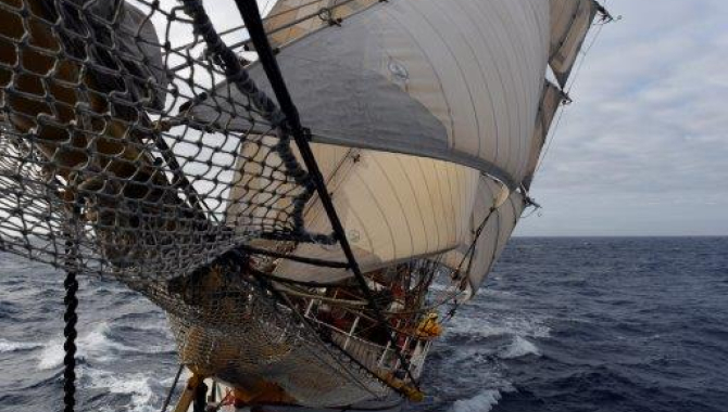 Our speed over the past few days has been ranging from a steady 1.4 knots at the end of the Beagle channel, to over 11 knots at one point in the Drake. After the pilot left us on the first day, the engine was switched off, and has not been on since. We stretched our calm time in the Beagle channel a bit – as we could see there was wind further out, and as we did not mind having some dinner before reaching the promised strong Westerly's in the Drake. So we slowly continued under sail, until after dinner we did enter the Drake. We know that the point where we reach the open ocean is the moment faces turn green, buckets are filled and doubts about the decision to travel on a tall-ship to Antarctica arise. I had promised all of this during our general voyage introduction the night before. It will happen to some of you. Don´t panic. It will not last forever. Antarctica is worth it. I found myself listening to my own words, trying to remember my conviction and keep going. A fact was that seasickness washed over the Europa as a big wave, affecting both permanent and voyage crew. The upside of the 30-45 knots of westerly winds was that they where blowing us South with a very good speed. Struggling to stay up is much more satisfying when going in the right direction at good speed, then when battling against the waves, almost not going forward, and if so, possibly not even in the right direction. This happens too. We have been heading in the right direction at good speed since we left now. After a bit over 24 hours the wind calmed down to about 20 knots – and as this coincided with the period people usually need to get used to the sea – many new faces appeared on deck. We could open up the watertight doors, get some air in the ship, and the watches that had been consisting of around 5 voyage crew – started growing to a size where there was a certain rotation possible between being inside and being out on deck. At the moment of writing – 04:20 in the libraryof the Europa on a Sunday morning – we are still a 115 miles from the nearest land. Captain Janke has taken out the charts of the South Shetlands and is preparing our entrance; Almost there.