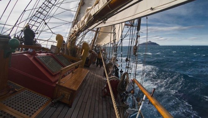 Unstable winds blow between 25 and 35kn up and down, at the same time that the swell increases as we hit the open waters of the Scotia Sea, making the conditions rougher, to the point of clewing up the Main Top Gallant during the night. The weather worsens but the winds still blow a fair South-westerly and Westerly to make way North. Now a few days of sailing along the latitudes of the Furious 50’s lay ahead.