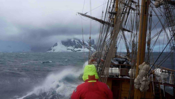 At Neko Harbour we are deafened by wind and hail, the gusts reaching 45 knots across the deck. With thick ice lining the bay it becomes apparent that landing here will not be possible. We have had our fair share of beautiful weather these last few days but it is not to be trusted – today Antarctica warns us of its untamed power. And so we continue north, passing between Anvers and Brabant Islands as the Gerlache Strait widens into the open ocean. The sun goes down, the swell goes up. Voyage crew take a long night of sleep ahead of the watch schedule resuming, and deck crew spend the night lashing down anything that moves.