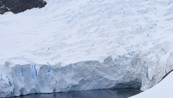 We first pass the small Argentine station Almirante Brown. The original station was destroyed by a fire in 1984, probably set by one of the staff who desperately wanted to go home, but was left here for another winter. The rock around the station, and along the coast towards Skontorp Cove, is volcanic, and laced with bright blue green minerals along its cracks and inclusions. Green mosses and orange lichens at to the palette. We pass some cliffs where blue eyed shags are nesting. The chicks look quite big in their dark down feathers. We follow the coast, closer and closer to the glacier. There are many icebergs around, crabeater seals resting on some of them. At the end we are almost surrounded by glacier fronts, straight ahead, on port side and on starboard side the heavily crevassed walls of ice rise up from the water. Europa has sailed all the way into the bay as well, and here, between the icebergs, we switch groups. We slowly cruise the same way back – past the glaciers, the bare, colored rocks and the shags, after which we get everyone back on board.