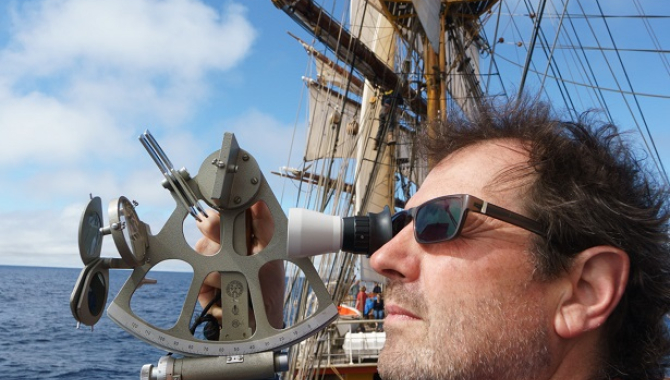 By using it what is actually done is measuring the angle between a celestial body (most commonly the sun but also are usable as the moon and many stars) and the horizon, then using calculations and conversion tables to project its zenith to hit the center of the Earth. For that, a sextant and a clock are essential, as at any determined time the celestial bodies are located over one point on the planet’s surface, which latitude and longitude are known as the “celestial body’s geographic position” and are listed on tables on the Nautical Almanac for that specific year.