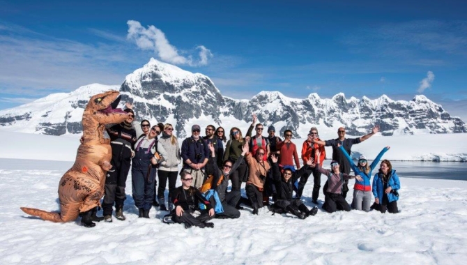 Waking up at our anchorage in the so-called Back Bay, close to a glacier front just passed Goudier Island and Port Lockroy, many of us enjoy breakfast on deck under clear blue skies and intense Antarctic sunshine. Port Lockroy, the wide bay on the large Wiencke Island where the tiny Goudier Island is located, has attracted those seeking a protected anchorage ever since Charcot discovered it in 1904, during his first French Antarctic expedition (Français, 1903-05). He named it for Édouard Lockroy, a French politician who assisted Charcot in obtaining government backing for his expedition. Afterwards the bay was used by whalers, and as many as 40 of their vessels could fit here during the summer season. Big rusty mooring chains, a few scattered whalebones and a couple of old wooden waterboats remain as silent witness of the busy whaling past of the area. Its more recent history is related with the construction of a Station established here during the WWII in 1944 to observe wartime enemy activities around these Antarctic waters, as part of the secret “Operation Tabarin”. Later on, the base was handed over to science and was operated by the British Antarctic Survey (BAS). Nowadays it is taken care of by the United Kingdom Antarctic Heritage Trust, and it works during the summer season as a sort of Museum, Souvenir shop and the most known Post Office in Antarctic Peninsula. All this and much more was explained to us by Hannah, one of the local girls that team up this Austral summer season to maintain and take care of this Historical Site. She was brought on board around eight o’clock to talk about the area and its history and inform us about the local current state of affairs. Due to the reduced space inside the museum buildings and the small size of island where they are located, together with the chance to visit the scenic Jougla Point (a rocky Wiencke Island cape just next door to Goudier Island), we decided to split the visit in two groups and visit both of those places.In Port Lockroy Base we can use the reduced walking space around it (half of the island is closed to visitors due to research project on their impact on the Gentoo population and their breeding), to enjoy the multitude of Gentoo penguins nesting all around, nowadays counted by several hundreds. It is difficult to believe that this location, back in 1944 was chosen to erect the buildings because there were no penguins breeding here. In Jougla Point we ascend a snowy hill from our landing site to gain a bit of elevation which allows us to get panoramic views of the bay and the surrounding mountain peaks and multiple glaciers. We visit a Gentoo penguin colony on top of the small hill before descending into the skirts of the bay where Antarctic Shags breed, mixed in with yet more Gentoo Penguins. Several Weddell and leopard seals are also hauled out on the nearby ice flows. Right between the nests, staff from the station is conducting research and this particular day surveyed the number of penguin chicks currently in the colony. After a couple of hours visit the groups swap landing sites, so everybody had the chance to visit and walk around to the panoramic views of Jougla, and also to visit the museum, post office and souvenir shop at the Base. There several post cards are sent by most of the voyage crew and many souvenirs of different kinds are purchased as memories and to raise money for the ongoing restoration work around the peninsula carried out by the charity. Back on-board for a late lunch we heave anchor and continue in the sunshine to Dorian Bay. Dorian Bay is a cove located on the north-western side of Wiencke Island, just about 3nm from the entrance of Port Lockroy harbour. The place was discovered and named by Charcot’s French Antarctic Expedition between 1903 and 1905. Charcot named it after a member of the French Chamber of Deputies. Two structures were erected on the shores of Dorian Bay; the Argentine Refugio Bahia Dorian in 1957, and a larger building known as the Damoy Hut in 1975, where it served as a British summer-use ice-strip for aircraft operations, before a new airstrip was built at Rothera Station, located further South. The Damoy hut and ice-strip were closed in 1995: the building is now listed as a Historic Site and Monument and is maintained and administered by the United Kingdom Antarctic Heritage Trust. The group as a whole, makes a short walk on the glacier to a small ridge to observe a penguin rookery. Here the group splits and some make a longer hike up the lower part of the glacier to the site of the old runway. This viewpoint offers great panoramic views over Port Lockroy down below, encircled by jagged mountains and tumbling glaciers. A short snow slide makes a fun way to descent and back at the landing site the zodiacs are waiting to take us back to the ship. The evening is spent cruising the Neumayer Channel in the setting sun, and then across the Gerlache Strait to reach Andvord Bay, where we plan tomorrow’s morning landing, on the continental shores of Neko Harbour.
