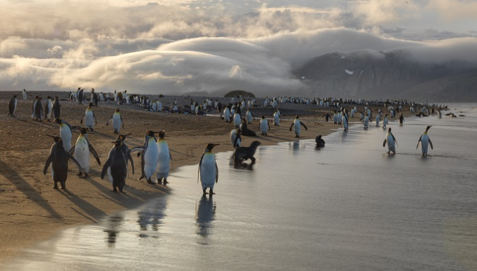 After spending the morning enjoying the quietness and relaxing landing in Prion Island, we embark for a short ride over lunch to our next destination, Salisbury Plain, a vast expanse of glacial outwash plains on the Southern shores of the Bay of Isles. Formed by the retreat of the Grace Glacier, and now covering over 2 square kilometres, being the largest flat area in the island. The place is home to the second-biggest nesting colony of King Penguins on South Georgia, an estimated 180,000 parents and chicks in all. But first estimated at 350 pairs in 1912, the colony has undergone a phenomenal increase in the later years.