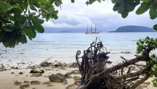 Raining dugongs and turtles, all day. Now we know why Vanuatu is so lush green. We awoke at the sight of our first landing. Champagne beach! But as soon as we brought our first zodiac ashore, we were met with Champagne prices for snorkeling and swimming. Fortunately, just 300 meters away, Lonnoc Bay awaited us, offering us probably the same beauty.