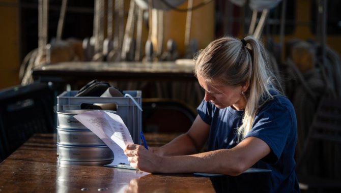 We have now crossed the equator and are travelling south with the Brazilian current and the south-eastern trade winds. Although the wind has been consistently strong we have still managed to find opportunities to slow the ship and deploy the manta trawl. As usual we followed the same procedure, making sure to measure data such as the salinity, sea surface temperature and weather conditions as well as other conditions such as speed and the geographical position of the ship. The crew and voyage crew have been monumental in helping with deploying the trawl as well as searching through the samples for microplastic. We have now trawled enough times that we are in a rhythm and very confident whenever it is time to deploy the trawl. Some have even been assigned at usual positions such as the manta trawl halyard and tow-line. Some have even taking a liking to the visual analysing of the sample and have developed a keen-eye at finding and picking out the plastics. The results have been consistent. In all trawls done, plastic has been found. This continues to emphasise the extent that plastic pollution is such a huge problem facing our planet. Although in a completely different hemisphere, the results have been conclusive so far in suggesting that there isn“t a single part of the ocean that is unaffected by plastic pollution. In the samples we found a variety of different types of plastic particles including, parts of fishing lines, bottle caps, wrappers, microfibers and nurdles just to name a few. Plastic nurdles is small plastic pellets about 5 mm in length, but can vary in size. They are used as raw material in plastic production. During production and transportation these can be spilled into the environment. They are also called Mermaid Tears by environmental organisations and they look like fish eggs. This means that a lot of marine animals end up eating these plastic pellets.These pellets contains toxic chemicals that then end up in the animals eating them. The toxins bioaccumulate and extends up through the food chain. The pellet itself built up in the digestive system of the animal and it get a false feeling of feeling full, because plastic pellets are not digestible.Even with an abundance of plastic pollution, wildlife still seems to be present. A number of dolphins visited our ship. They were a rare type of dolphin called Clymene dolphin and they stayed, playing under the bowsprit for an hour or so. For me this acted as a reminder of the beauty of the ocean and the wildlife within it as well as why it is so important to protect it. These beautiful animals have given me even more motivation in continuing the research and doing what I can to help conserve the wildlife we have left. Regitze AndersenBark Europa