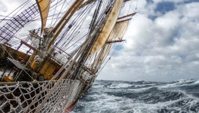 From the early morning onwards the wind started to pick up, while the ship is being prepared for the stormy weather to come, keeping the night watches busy on deck and aloft. First the braces are pulled tight to sail on close-hauled Port Tack, before the swell starts washing our decks. Then we start reducing canvas and furling the sails that gradually are coming down, starting with the Outer Jib, followed by the Top Gallants. When the wind blasts started to be about 40kn, both Courses are clewed up and stowed away. Parallel to the steep wind increase came also a rise on the swell. And acouple of hours later, already before the sun rises behind the clouds on that overcast day, water regularly wash over the Main deck with every big wave that hit our Port side. Europa ploughs the high seas, dropping heavily on the swell, but still making about 5kn under the Courses and Top Sails, head rig still set but the Outer Jib, Aap as a substitute for the larger Desmond and the Spanker. And for all of us, the untamed seas act as a reminder of the ferocious conditions that from long ago made famous those latitudes of the South Atlantic. With a day like yesterday, many thought we were already off the harsh weather grip, but since the early morning, today the “Roaring forties” are paying good tribute to their name. Seas rolling high as far as the eye could reach, its waves and swell tops white with foam could bee seen during the whole day while courageously we take the helm on our hands or hold-on while doing the lookouts. The situation didn’t abate yet in the afternoon. On the contrary, it even seem to became slightly stormier, with the wind howling steady 35 to 40kn and occasionally gusting with stronger force. All indicating that was time to tight our waterproof clothes and getready to step on the wave swept main deck to clew up the Upper Topsails, lower the yards, pull hard on the buntlines and climb aloft for furling. From then on, with water coming over Starboardside rails, Europa keeps holding-on braving the roaring situation, still keeping some good speed of 5 to 6kn towards our destination, under the reduced amount of canvas. Still some occasional waves struck Europa’s hull with thundering sounds, breaking against her sturdy hull and swashing spray up to the lower yards and above Sloop and Poop decks, washing some unsecured rigging off the pins. Crew quickly pick up the loose ropes before are washed overboard through the freeing ports, that slam continuously in an effort for draining the deck. Luckily the overcast morning was gradually dissolving on a sunnier afternoon, this together with the mild temperatures of about 13ºC at least made for a pleasant sailing and rolling time, while dressed less of an Antarctic fashion, but still wearing our outer foul weather gear, Is on days like today that care must be taken to move around the ship. Seems like every movement requires anticipation and thinking. Cabin drawers and cabinets fall open, cups and plates require always a hand to hold-on them and meals buffet table can end up on a nutritious mix of extensive messy proportions. The calls for cleaning buckets ands rags from the galley are often heard today during meal times, as for many is still difficult to eat and drink on a heavily heeling and rolling ship without spilling milk, juice, coffee and teas and of course our daily tasty soup, always served for lunch regardless the weather, wind and sea state situation. On deck the situation is similar. With water splashing all over and swells climbing over the rails as the ship heels and rolls, payingattention while working or walking around can save from a dip in the scuppers. Time after time, those are filled with large amount of water, making for unfast items to be washed overboard if someone is caught unaware by a breaking wave. Circumstance seen today by our Captain Janke that bravely tried to catch a loose pair of glasses from the water filled lee-side of the Main deck … with the only result of getting drenched clothes and her boots water filled as well. But that is the life at sea, the beauty of the long sea passages, and the added appeal of the variable and unsettled meridional latitudes. One day the sun shines, fair winds fill all our canvas and we sail over a calm ocean; the next day we are caught on stormy seas, foul winds and stormy meteorological conditions. But bad weather, the unstoppable watch system around the clock and the hard work at sea, can be borne up against very well, if one only has the spirit and determination to let go fears and dismay. Grab a moment to observe the grandeur of the ocean and its occasional hot temper, take the wheel and ride the swells towards an appointed destination, or observe the enraged winds and swells while keeping a good lookout. For the passionate birdwatchers we are entering a seabird paradise, where many species can be seen that nowhere else lay their eggs but in the close Tristan archipelago or similar Subantarctic and temperate islands. Today a couple of new ones had been spotted. What seems to be a handful of Broad billed prions flew next to us for a while, with their characteristic large head and steep forehead, and broad based beak. Nevertheless the prion group always show identification difficulties as many species are quite similar to each other and share the oceanic areasif not also some of their nesting grounds. A couple of Soft plumaged petrels were spotted today as well. Quite solitary at sea, those have a South Atlantic and Southern Indian Ocean distribution, nesting in colonies on subantarctic Islands and Tristan da Cunha-Gough archipelago.