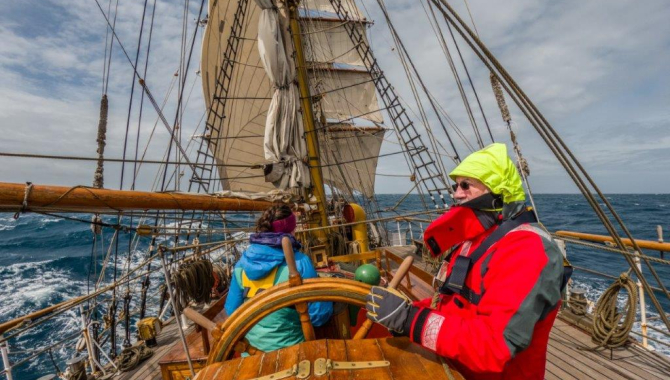 Adjectives that give an idea of the difficulties of this quest. The swells had risen, and the following winds blew stronger. Today the ship rolls and rolls. The waves, grow in the uninterrupted waters around the world at those southern high latitudes. They came in a seemingly endless succession of water hills that were breaking over the ship’s railing and now and then filled the main deck and breezeways, battering the starboard side and running across the deck to the leeward. It all made for difficult steering when combined with the strong winds from the aft. Below decks and in the cabins everything that had not been taken care of and well sea-stowed was tossed in a bit of a mess, as a sailor’s saying goes “everything on top and nothing at hand”. Walking around the ship, getting off our bunks, dressing in our foul weather gear, donning the harness, and joining the watches on deck require care and anticipation of our moves and the shakes and lurches of the ship. A rolling that makes for the feared seasickness to strike. And it does it hard today. Up to 20 people feel the motion sickness and up to half of them can’t show up for their watches.