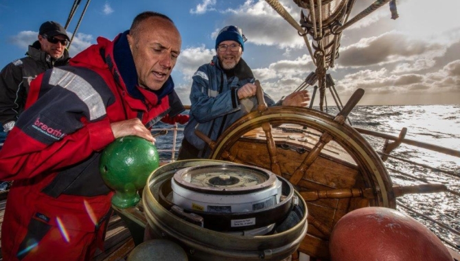 The nice sailing night ran smoothly, with the wind blowing from behind us, that made for taking away and furl the Fore Top Mast Staysail and Dekzwabber that started to get shadowed by the other sails. Also some preparations were started to get the ship ready for the forecasted wind shift, from the W-ly we had overnight is expected to back all the way to SW-ly and S.On a good course we set all the canvas that would help us to squeeze some more speed, luckily before breakfast the large Desmond was bend on again after running through some repairs, replacing the smaller Aap. Like this we spent the night, finding ourselves at the morning change of watch sailing at about 7 to 8kn on 25kn of W-ly wind, steering 070º. Soon after, a passing squall brought a bit of wind changes, and as we wait for the flow to stabilise the wheel tries to keep a 060º course. A few minutes were enough to realise that the brief shower was associated with a sudden wind shift of several degrees. The announced change from W-ly to SW-ly was abruptly happening, signalling the time for Wearing ship. Hands are called on deck and distributed on the several manoeuvres to be done. First the Courses are clewed-up and Desmond comes down. As the wind shifts it also increases force and blows over 30kn making for striking and furling the Royals and the Mizzen Tip Mast Staysail. With people on both masts’ braces we pull them from Broad Reach Port tack to Starboard tack, followed by passing the Staysails and Head rig over the other side and re-setting the Courses. On the wheel we go back to a good 080º steering. From then on a handful of small showers bring some stronger gusts, from which we take advantage to reach 10 to 11kn of speed. Easting our way that fast, it didn’t take long to reach the position 39º 21,9’ S ; 0º 00.0’ E making at 10:41h AM our way over the Prime Meridian under sail on fair winds. From now on we will sail on the Eastern Hemisphere of our planet.In this modern times, just a quick look at the several GPS devices we have on board and at the simplest watch are enough to write down this data. Global Positioning Systems installed on board are enough to know and verify our whereabouts, to check and make sure of our progress and location on the surface of the earth, to plot it in a digital and paper chart. But in the past, for a long time it represented a burdensome problem to be solved. A method for finding out the Latitude through calculating the altitude of the sun or specific stars above the horizon was first developed. But still trying to obtain the specific location along the axis East-West (Longitude) represented an issue for much longer. Historically several methods were developed to try to acquireaccurate positioning with precise readings of both Latitude and Longitude, in the featureless ocean. But it was not until the invention of the marine chronometer by John Harrison in the late 18th Century that a solution was reached to correctly establish Longitude at sea. The procedure is based on specify the time difference between a determinate location and a Coordinated Universal Time (UTC), that represents the world’s standard to regulate clocks. It has been split into three versions differing between them just in milliseconds. The so called Greenwich Mean Time (GMT) corresponds with the first of those and refers to the mean solar time at the Royal Observatory in Greenwich, London, where the Prime Meridian (0º Longitude) goes through. This time, related with the precise duration of a day, has been calculated using long time sequences of data relevant to relative Earth and stars motions. Latitude has the equator as a natural setting for 0º, determined by the rotation axis of the Earth. But how to choose a natural starting position for the Longitude? All of the Meridians represent diameters of the planet as lines of the same Longitude running from North to South Poles, and are perpendicular to the Latitude circles. Therefore, a reference meridian had to be chosen as the Prime Meridian, that would represent the 0º longitude. In the course of history different conventions had been used to establish the 0º Longitude, including the lines passing through Paris, Canary Islands, Cape Verde, Rome, Copenhagen, Washington DC and several others. The British Mathematician and Astronomer Sir George Airy already in 1851 proposed as Prime Meridian the one based on the Greenwich Royal Observatory, but it wasinternationally accepted later on, in 1884 during the International Meridian Conference. There it was set that the meridian throughGreenwich, in East London was the 0º of Longitude, and the longitude of other places was to be measured as the angle east or west of it, from 0º to 180º eastward and westwards. By convention also the East longitudes were to be assigned as +, and the Western with the sign -. And thus, after this choose, in a way arbitrary, we all started to measure our East-West position in relation to Greenwich, which we sailed across in the morning.Another taste of history and older times in navigation we got when the modern iPad (device we use to show us the steering) seem to have been overheating after being continuously plugged-in, and is in need of a rest. For the afternoon we went back to take the shifts at the wheel steering by the magnetic compass. First thing we raise is the variation of about 15º that it shows if we compare with what we were steering on the digital screen. This new devices are set to indicate the true North, as opposed to magnetic North, and they are unaffected by perturbations of the Earth's magnetic field. Magnetic compasses are very stable in areas close to the equator, but when we sail in high latitudes closer to the magnetic poles, the compass responds in a more sensitive way to crossing the planet’s magnetic field lines.