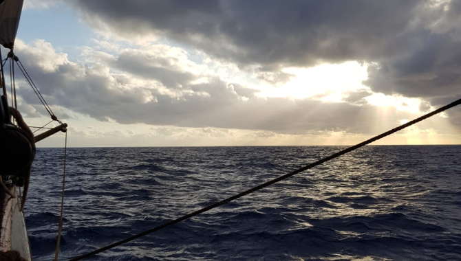 Goodevening,POS: 13'51 N 023'08WCRS: 185'SPD: 5,7ktsWND: NE 4bftSEA: SlightSWL: NE moderateClear sky (the sahara sand haze is gone), full moon and the movie of the Peking on deck. Everything you might imagine for a warm area crossing is there.We just touched the 1000nm this afternoon, which is in our opinion not bad at al for the first week.Painting and varnishing started.Regards,Arian