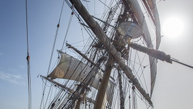 The sail configuration during the night ends up being: Lower and Upper Top sails set, plus Storm Jib and the Dekzwabber. Experiencing those rough, but great, sailing conditions, not many of us are around, excluding the ones available that are on watch. Anyway having a look at the sea, besides being impressive and dramatic, we could also see some birds enjoying those strong winds. Several White chinned and also some Giant petrels are spotted, joining their gliding flight with the more elegant Black browed albatrosses, and even a couple of the small but brave Wilson storm petrels are also seen dealing with those big swells.