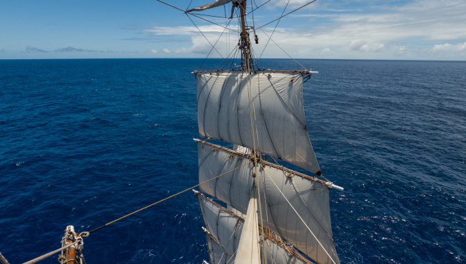 Goodevening,POS: 06'40 S 033'06WCRS: 185'SPD: 6,8ktsWND: E 4-5bftSEA: SlightSWL: ESE lowWe left the equatorial current coming in from port and now sailing nicely downstream. Drift reduced considerably. Still close haul for now. About 1500 miles easterly winds ahead of us. I heard the words "nice sailing" quite often today. Smooth is maybe a better word.Rgds, Arian