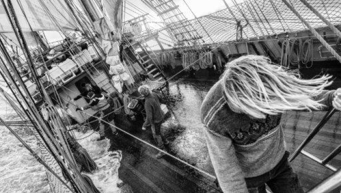 Increasing wind and growing swell made for clewing up and furling the top gallants in the early morning. The 40kn of wind blowing from the NW, cold temperature and rainy skies, spiced the challenging sailhandling and work aloft. During the whole day, Europa sails the raging seas close to the wind, still doing a good speed but at the cost the heavy rolling and heeling to port side. Since departure, the Scotia Sea is paying a good tribute to its stormy and cold reputation. As it cannot be in any other way when we think of the area of the world where we are sailing at the moment: between the “Furious” 50ºS and the “Screaming” 60ºS, across the body of water between Tierra del Fuego, South Georgia, the South Sandwich Islands, the South Orkney Islands and the Antarctic Peninsula, and bordered on the west by the Drake Passage. The Scotia Sea is home for all those various remote islands, that form what is called the Scotia Arc, famous for its varied geology, wildlife richness and dreadful climate. Under the deteriorating weather and sea conditions, it seems that luckily we left behind the icebergs that sprinkled our way off South Georgia. Drifting on the oceanic gyre that runs clockwise in the Weddell Sea, those tabular icebergs had made their way all the way to the island, and were gradually breaking apart, dropping bergy bits and growlers into the wild waters of the Scotia Sea. Those relatively small ice chunks often cannot be detected by the ship’s radar in heavy weather conditions, and eventually can represent a hazard for navigation hence the need to keep a sharp lookout. Far from them now, but they sure will show up again soon on our southerly course. The straight course set to South Orkneys today started to bend southwards as the wind began backing to the west. No major atmospheric systems are expected to cross our path in the close future, and we still sit between a strong High Pressure located in the North and a deep Low in the South. The corridor between both gives the strong winds from the westerly quarter.