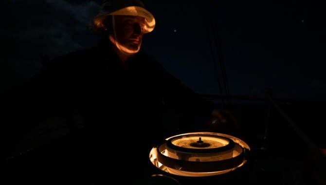 Steersmen now are keeping the good course having to pay attention to a couple more things than the electronic device rigged in front of the wheel. On one side the sails have to be filled up for the good speed, on the other hand the steering goes through keeping a good eye at the magnetic compass, as the electronic system started to give some trouble and became less reliable.