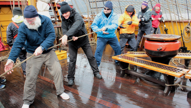 Although we’ve only been sailing for four days, I feel like the others in my watch are quickly becoming a family, working and laughing in unison. We’re part of the Red Watch. As trainees, we’re encouraged to participate in a three-watch system, with four hours on and eight hours off and a split ‘platvoet’. Following this system we have watch at different times every day so we see a sunrise one day and a sunset the next.