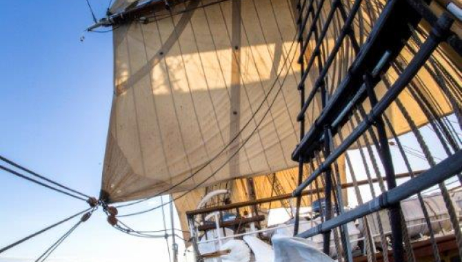 The wind increased during the morning, blowing a good 20 to 25kn from the WSW, as we keep steering almost downwind on a 40º course, as lots of canvas is still set is time to take down the fore-aft sails, leaving only the Main Top Gallant staysail set, together with the Spanker, Inner and Outer Jibs, while we start achieving speeds over 7kn that will keep for the rest of the day.