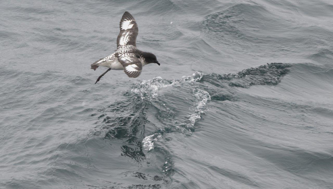 Who doesn’t seem to mind the lowering temperatures, icy conditions or fog are the numerous seabirds that keep circling around the ship all day long. Flocks of Antarctic prions follow us here, at their home. We have been seeing them every day since departing from South Georgia, one of their breeding areas, but they also use other lands around us. Many nest in the South Orkneys, South Shetlands, and other islands near the Antarctic convergence. Sailing along those latitudes, their flocks can be found anywhere in Antarctic waters and beyond.