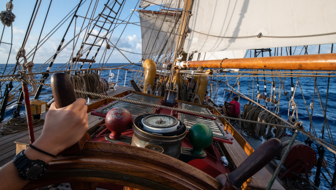 Goodevening,POS: 26'15 S 043'46W 200nm south of Rio de JaneiroCRS: 250'SPD: 4,2ktsWND: SSE 4bftSEA: SlightSWL: S moderateThe strong winds and rough seastate are gone. Slowly setting more and more sails throughout the day. Closing in on the centre of the high pressure area with light winds. After we expect to set course southwest again. 1490nm to Puerto Madryn to go.A singing contest in the lounge this afternoon and chicken Madagaskar on the menu.Half the crew is murdered already, luckely it is a game. For quit some time there has not been any malfuntioning technical item. It has been a sunny day in many ways.