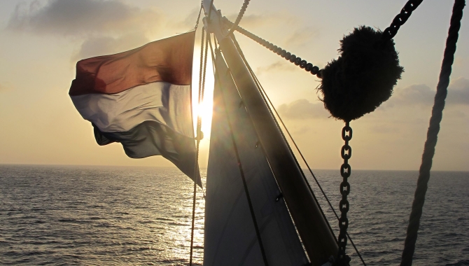….. this morning bosun sent me up with a leather bag of tools to fix the fastening of one of the staysails. He said he did not know precisely on which level the mending was to be done, but I would find out soon enough.