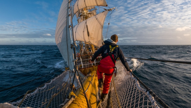People on board therefore slowly grow in size. Not only because of the good food. It's the layering up. Building layers of clothing is the best way to keep yourself warm standing at lookout or steering for half an hour. Even the permanent crew comes up on deck, dressed being used to the warm temperatures of the last days, and having to go down again to get some more warm clothing. It has begun...South Georgia, here we come!