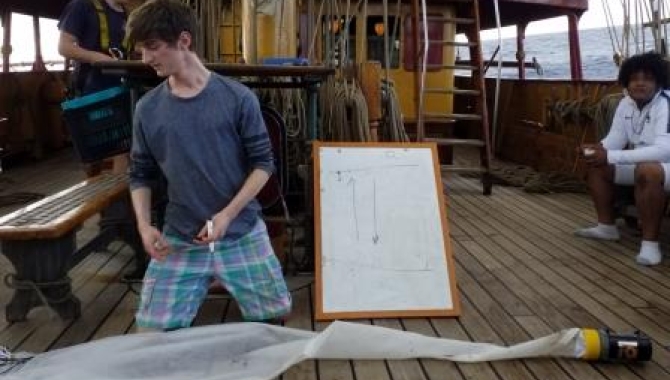 Squall: (n) A sudden, sharp increase in wind speed that is usually associated with active weather.Squall: (v) A loud, emotional expletitive in the form of shouting or crying.We were: settling happily into watch routines, easing into sail handling, marvelling at endless skies and the mind boggling reality of the Deep Blue. We were: getting to know voyage mates, living to eat the extraordinary food prepared with love by the galley staff and attending lectures on ecology, research, geography and wild life. All very pleasant. All very gentle. All very enriching for body and soul."Lower the stuns'ls" said Captain Klaas. A seemingly innocuous instruction, delivered in his usual calm and collected manner. The only indication that this was out of the ordinary was that we were allgathered on the main deck, absorbing the details of the plankton research our resident marine biologist Marcus was sharing in his lecture. There was a moment of stillness, which was to be the last forthe following 48 hours, before Europa's permanent crew exploded into action and the rest of us stumbled about looking slightly bewildered and confused.It appeared a squall was on the immediate horizon. The pastel blue sky washes, punctuated with cumulus, stratus and nimbus, was a stripe of dense black. Within minutes the wind began to pick up, the sea began to swell and the crew began to efficiently direct us to decks, pegs, lines and sails. No negotiating. Time pressure.The squall passed relatively swiftly, the swell in its wake did not and the following two days have been a steep relearning curve in basic human development. How to walk, how to get dressed, how to eat safely, how to carry on one's business in a bathroom without broken ribs and serious concussion!It is an absolute testament to all that despite only five days at sea, profound differences in nationalities, age, gender, life and sailing experiences, we are working together to keep moving forward with good humour and smiles!
