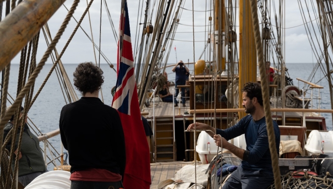 Well, now we are in the thick of it. Over the night the wind has increased to 40 knots True. In the morning we took down the T'Gallants down, and now we are here doing up to 14 knots in up to 50 knots True. The outlook is that it will go up and down a bit until tomorrow morning. After that we can steer a bit closer to the wind and sail out of the depression.On board we wish Aydan a happy birthday. Also, we have carrot/ginger soup.GroetHans