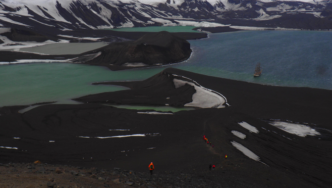 Good evening,POS: 62*45,0 S 062*08,0 WCOG: 310SOG: 4 ktsWND: NNW 5 bftSEA: 3.5 - 4 meterThis morning we did a last landing in Deception Island at Telefon Bay. After that we passed Neptunes Bellows in beautiful conditions and then we were on our way to the Drake. For a bit the wind decreased and that is just the gap we needed to get out between the islands. We're almost through that part, but not yet. With two engines we're steaming into big swell of 4 meters. The deep ocean meets the shallow island waters here. Once we're out in deep water the sea will get a little less steep. For now it is rocky with not too much wind. Slowly the NW'ly will pick up over night. We'll check the direction and with that see which course to follow to gain as much distance in direction Beagle plus westerly for later winds. Hopefully we'll be under sail by tomorrow this timeKeep you updated!