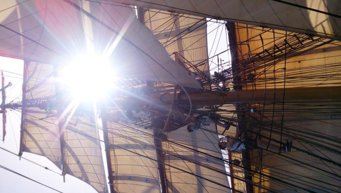 and were soon of into the rigging for the first steps aloft. The sea was