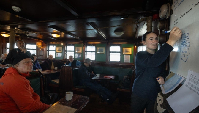 Keep a continuous eye on the strength and wind direction, check how’s the barometer doing, scan the horizon for dark clouds passing by, adjust your sails, adjust your course, sail as much as possible, and take advantage of what the weather brings. Focus on what’s actually happening, rely on your experience and the long time spent in the field, to use what the environment offers at any time.