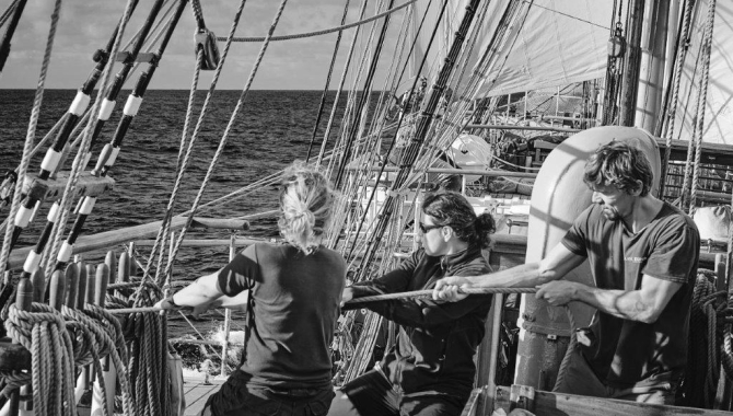 But the winds were not cooperating and the weather forecast showed light winds for a week. The seas became calm, a good condition for motoring as the ship doesn’t have to battle the swell which would slow her unnecessarily down and ultimately make us burn more fuel. Occasionally, when winds picked up we set some sails again to help the engine with a little bit of a push. It proved to be a frustrating experience at times as the wind kept making fools of us. Setting all the sails and then taking them away and furl them all takes a time. We spent one entire watch doing sail handling and then being aloft. In a strange way, it was frustrating but also a satisfying experience.