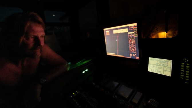As you probably know, the Earth is not a perfect sphere. It bulges slightly at the Equator. This bulge is the reason why Mt Everest is not the highest mountain if measured from the Earth’s center. That title belongs to Chimborazo, (6,263m) in Equador. But I digress. It was a joy to see the number dropping so fast. As the latitude came close to zero, we gathered in the wheelhouse and watched it happening on the radar. Our eyes were glued to the screen with the GPS coordinates. For a fraction of the time interesting things happened. At the moment of crossing, people in front of the ship were already in the northern hemisphere enjoying the spring while the helmsman was still in the south in a