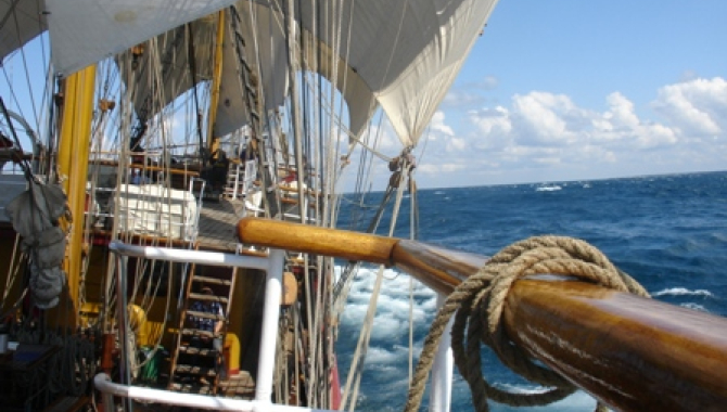 With winds easing, then increasing, wind shifts etc. we turned the engines on and off several times, set sail, took down sail, braced - it kept us busy! Indeed, we're clearly not in the trades anymore, where it can take days before you have to even touch a sail.