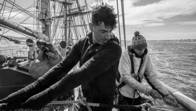Destination South Georgia, yes… but in the Europa what counts is the whole experience of the voyage; the ship on its own is a destination on herself. Yesterday’s rolls, today’s heeling. She races Close Hauled on strong winds or wallowed like the old broad and heavy matron she is, with her yards squared and a light breeze from behind.