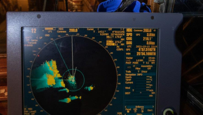 The opportunity was taken by a Swallow to find our ship as a resting platform on its long migratory patterns between Europa and Africa, and spend the rest of the day around, finding a perfect overnight spot above the radar in the wheelhouse, safe from the menacing squalls all around.