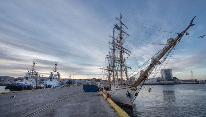 The Bark Europa was moored in “Muelle Prat”, located close to the city centre. The busy port was home of several fishing, scientific, navy and coast guard ships, with the Europa looking pretty and elegant amongst them. It’s from here that we will start our journey already tonight. First along roughly 400 nm from Straits of Magellan to Cape Horn, then over some 500 nautical miles of the Drake Passage to the treacherous iced waters of Antarctica. From there we plan to sail to South Georgia, the remote Tristan da Cunha and ending up in Cape Town. A journey which will take us to some of the most pristine and remotest places on Earth. Some already left the luggage during the day and venture out to enjoy a few hours in town, but many embarked with all their belongings for the trip around 16:30 to 17:00h.