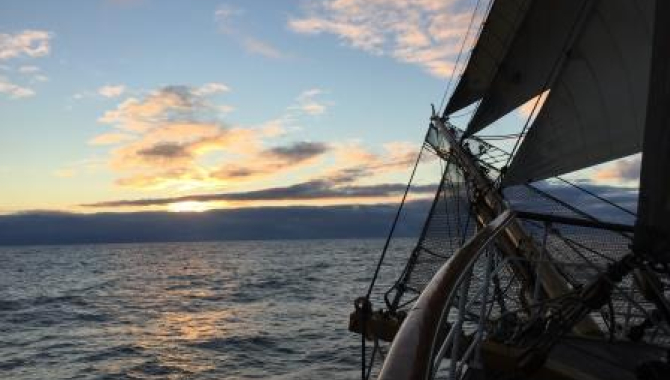 04.00 Arriving on watch after a heavy night of birthday cake celebrations we swiftly manoeuvred the ship around stormy skies. 06.39 Ship dog Sirius barked the alert to the starboard side of Europa, communicating to the captain that large sea beasties, 10 strong pod of pilot whales were approaching the ship. They sang sea shanties with beautiful whistles and stayed to circle us for twenty minutes and left us just in time for breakfast………..and the day has just started.