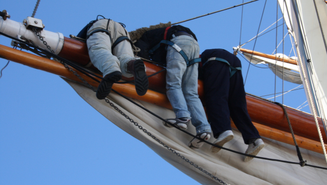 It has almost become a joke in Red Watch that when the captain mentions during his post dinner briefing any sort of potential sail handling, it'll land during our shift. Tonight, like two (or three?) other nights in this voyage before, was no different, with the word coming with 45 minutes left in the watch. Alongside the permanent crew from the Starboard Watch, we spread out across the decks at 11:30PM and set our sails - Top'sls, T'gallents and Courses.