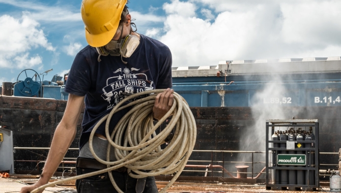 Our future objective and the top of the mountain for us is to keep sailing and once more offer our adventures over the world’s oceans. But this goal will have to go first through the actual world exceptional situation under the policies for dealing with the virus pandemic, but also through weeks of repairing on board what is not in good working condition, maintaining and preparing our ship. We can’t do much about the first point, and it is even uncertain when or how we will be able to fix our society and ourselves in the following times; but during the next weeks we will be mending the Europa, our little part of the world that is within our reach, and the base to make our voyages happen.Europa’s hull carries on her shoulders over 100 years of history and a several years refit from her original sedentary purpose as a lightship in Elbe River, to the highly diverging task of becoming the ocean wanderer bark she is today. To keep her up and running is worth the investment and effort. We all know that lasting things require constant maintenance and repair, a point maybe not as valued as it should be in the actual society, where is all more based on one-use and a quick turnover of items.Now, days pass for our crew while performing the necessary tasks of sanding, grinding, rust busting amongst other countless undertakings and the more specific jobs of our carpenter and engineer. The dirt, paint, dust and the noise, defy daily the efforts to keep decks and shipyard tidy, all together being necessary but at the same time giving such a shocking and different look compared to the romantic idea many have of sailing across the oceans.