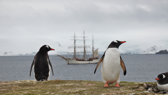 It was a day of rest for us after two days with multiple landings and hikes ashore: zodiac cruising! We started the morning by putting all our three adventure boats in the sea: Sloopy, Grey and Blackie zodiacs. Lex took over Blackie, Skinner and Laurits were steering Grey and Annukka kept the tail with Sloopy. People were divided in two groups to go explore Trinity Island "Iceberg graveyard", a shallow area and a narrow channel where the Icebergs tend to get stuck. We saw a gorgeous iceberg sculpture park, and lots of birds gliding above us. Especially the Antarctic terns seem to breed in this area. On the first zodiac tour of the day we had to go against some swell and wind for a bit and that is always fun and exciting, especially with Sloopy. After this slightly wet part was over we were rewarded with hot chocolate and a piece of chocolate each, floating in between the icebergs all together in our boats. We saw crab eater seals relaxing on one of the icebergs and a lovely fur seal that was almost certainly posing for our cameras on a high rock next to the sea; stretching and scratching and showing off its shiny fur.